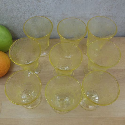 Hazel Atlas Florentine Yellow 2 - Footed Juice Glasses 9 Set