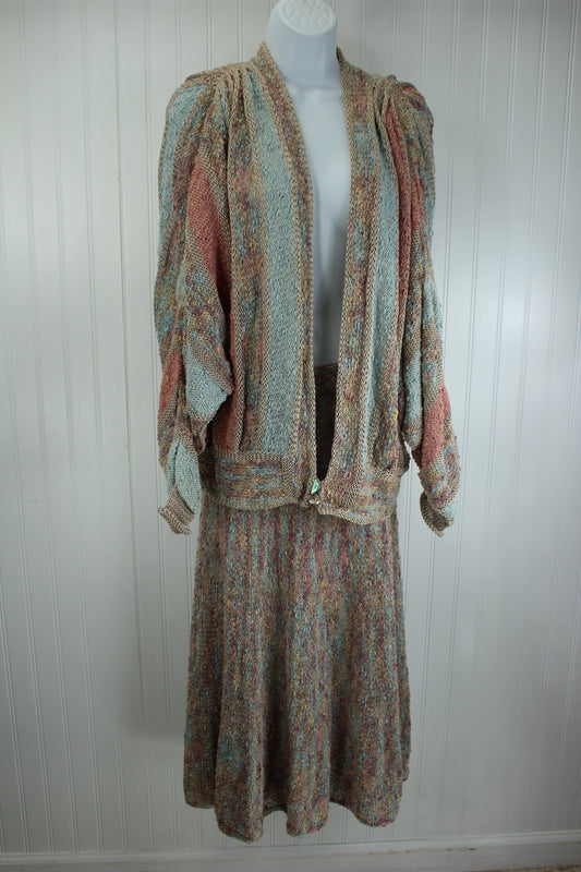Haute Couture Knit Pastel Ribbon Metallic Yarn Suit Jutta Mitchell N. Bend Oregon