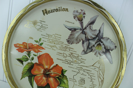 Hawaiiana Metal Serving Tray Map Hawaii Islands Orchids Hibiscus