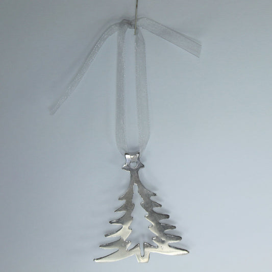 Holiday Christmas Ornament Silver Metal Cutout Tree Hand Made