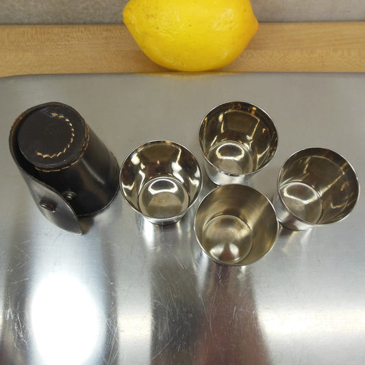 Herz Germany Silver Metal Nesting Shot Glass Set Leather Case