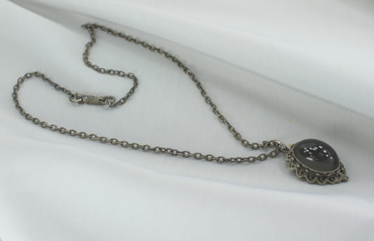Hobe Necklace - Vintage Smoky Glass Focal Silver Tone Chain - 16"