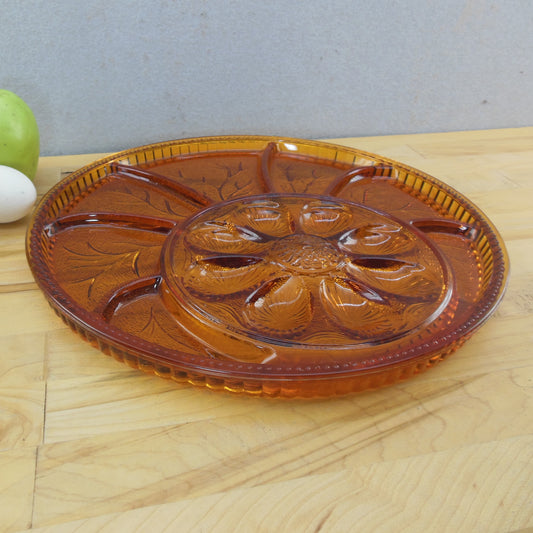 Indiana Glass Amber Pebble Leaf Deviled Egg Relish Appetizer Platter