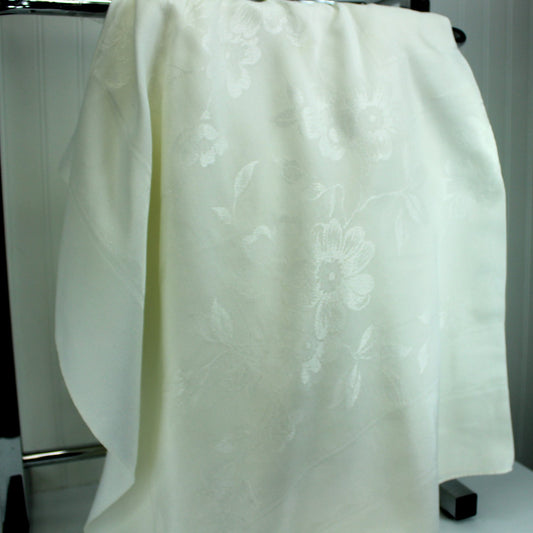 Ivory Cream Damask Tablecloth Vintage Mid Century 48" X 66"