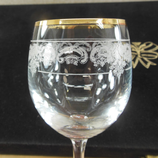 J Preziosi Italy Wine Goblets Etched Gold Rim Stemware In Case