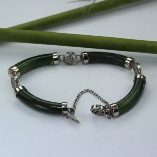 Jade Tube Link Bracelet 8" Length Silver Tone Safety Chain