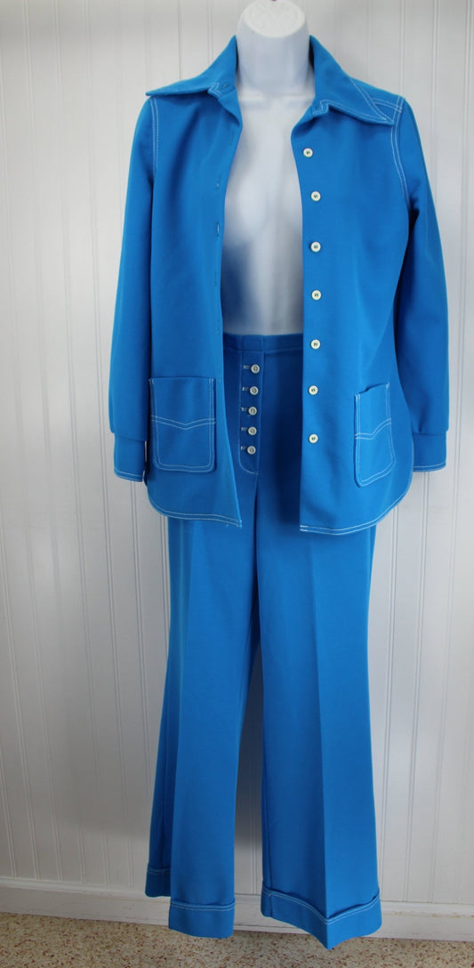 Jantzen 1960's Nautical Pants Suit Button Tab Flare Pants - Long Sleeve Jacket
