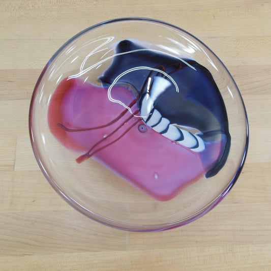 James R. Wilbat 1992 Blown Art Glass Bowl 8.25" Abstract Cranberry Blue