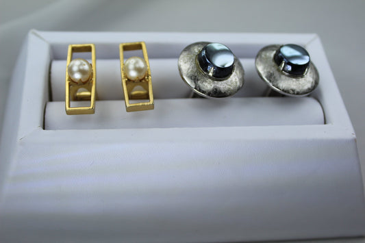 Jewelry Lot 231- Vintage Cuff Links 2 pair Collection Goldtone Pearl Silver Black