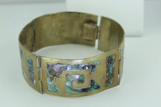 Jewelry Lot 539- Abalone Alpaca Vintage Link Bracelet Dangle Wire Pierced Earrings