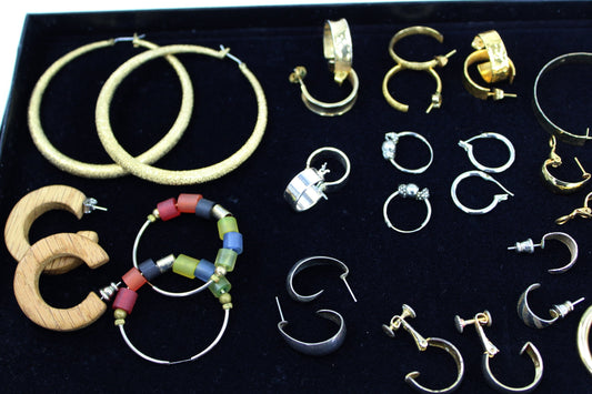 Jewelry Lot 574- Post Earrings Lot 16 Pairs Hoops Unmarked Metal Wood Bead