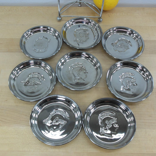 Kimiko Glass Silver Drink Coasters 8 Set Caddy Roman Trojan Soldier Head