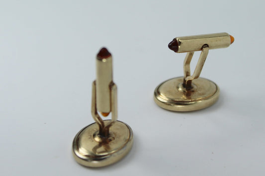 Krementz Cuff Links - Classic Etched Ovals Gold Tone Amber Toggles