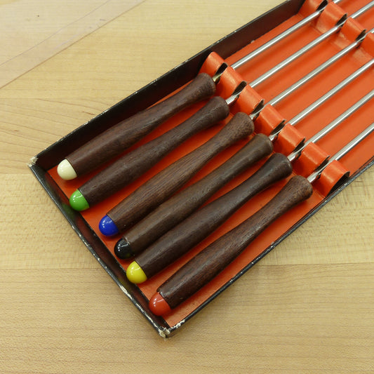 Knobler Japan Stainless Teak Rosewood Fondue Fork Boxed 6 Set