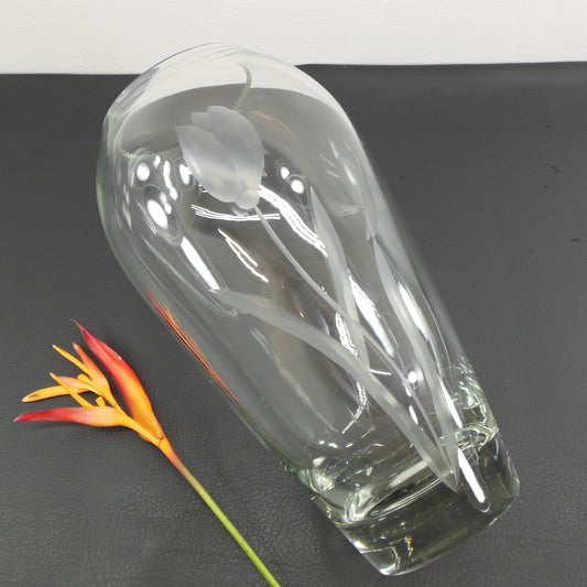 Krosno Poland Cut Etched Glass Vase Tulip Flower 11.75"