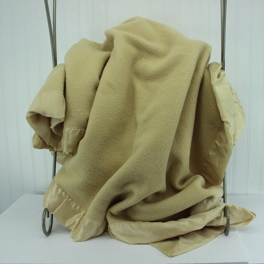 Large Fieldcrest Blanket Washable Wool Beige Matching Binding No Tag