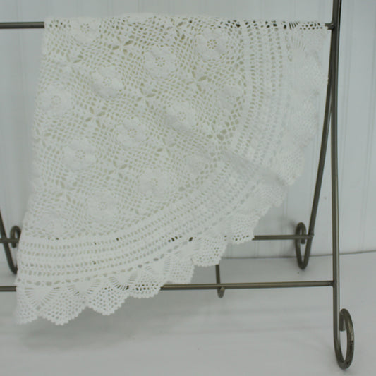 Large Round Crochet Doily Tablecloth White Heavy Cotton 30" Diameter