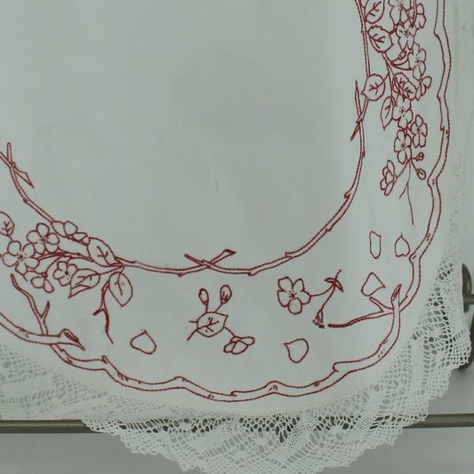 Large Round Embroidered Doily White Linen Rose Floral 20" Fine 1 1/2" Lace