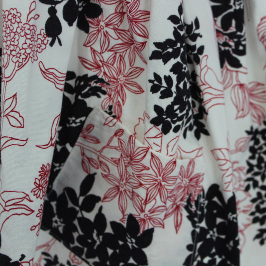 Large Half Apron Heavy Cotton Black Red Print Floral