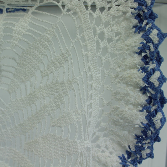 Large Round Crochet Doily Tablecloth White Heavy Blue Ruffle 21" Diameter