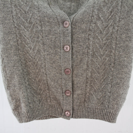 Vintage Bonanza Grey Lambs Wool Cable Knit Sweater Cardigan Medium