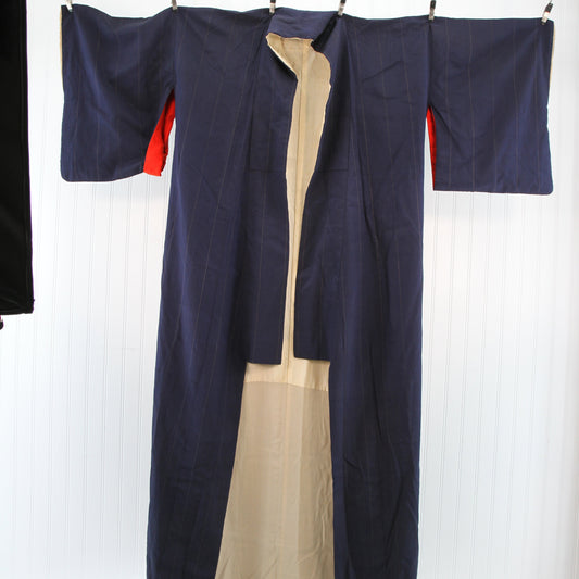Vintage Formal Navy Blue Kimono Long Length Silk Lined