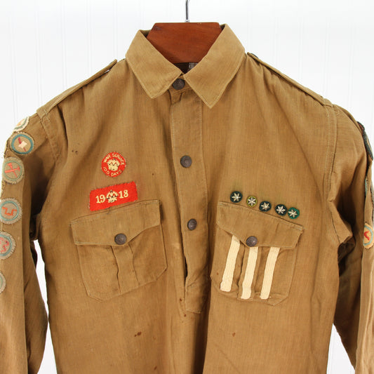Antique Miller Official Boy Scout of Canada Shirt WWI 1918 Badges Patches