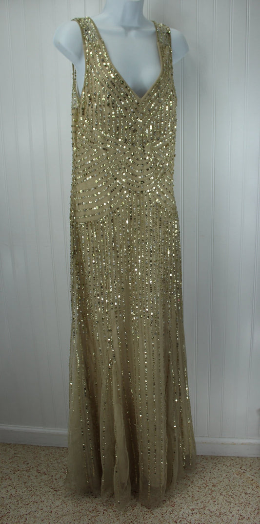 Aidan Mattox Long Sequin Dress Champagne with Silver Gold