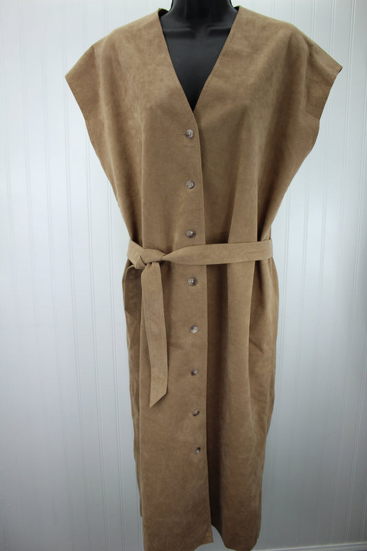 Tan Ultrasuede Long Vest or Dress Washable Packable Flexible Wear