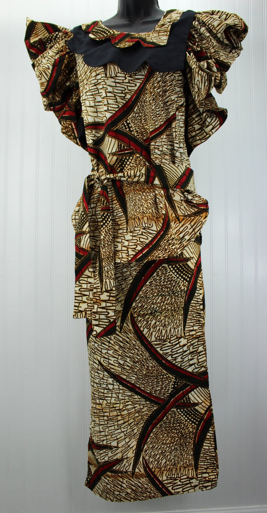 1980's West Africa Dress Cotton Batik Tie Belt Custom Queen's Shop Kno Nigeria