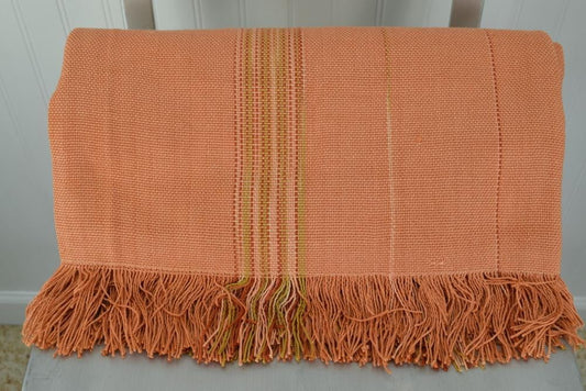 Unbranded Caftan Hand Loomed Orange Sherbet Chenille-Like Intricate Trim