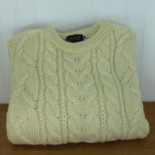 Blarney Mens Ireland Wool Pullover Sweater Ivory Aran Style XL