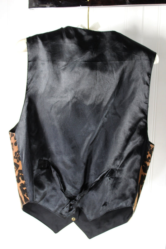 AGAPO Suede Leather Vest Leopard Print Black Brown Women's Small