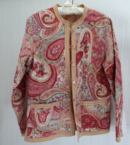 Unbranded Vera Bradley Style Jacket Reversible Quilted Paisley Rose Pink Cream