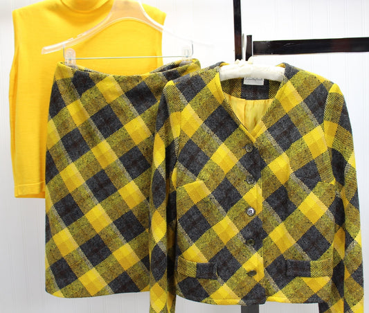 Evan Picone COUNTRY SET Wool Suit 1980's Charcoal Gold 3 Piece