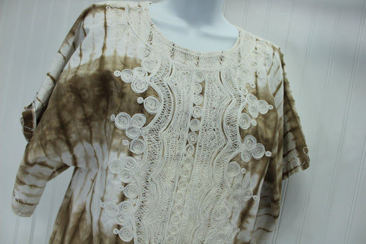 Nigeria Cotton Dress 1980's Embroidered Dyed Cocoa White