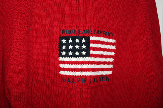 POLO Lauren Cotton Sweater Knit Pullover Red Flag Design Unisex XL