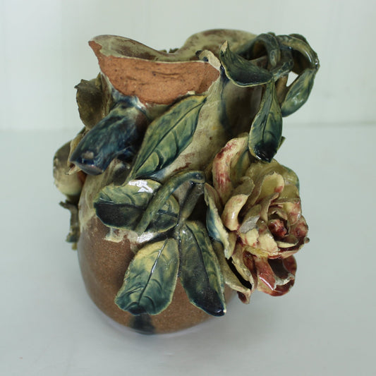 Antique Majolica Floral Vase Red Clay Ohio Estate