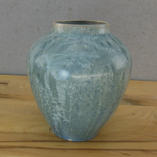 Signed JK 1991 Blue Crystalline Pottery Vase 5"