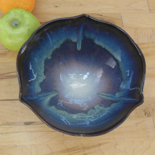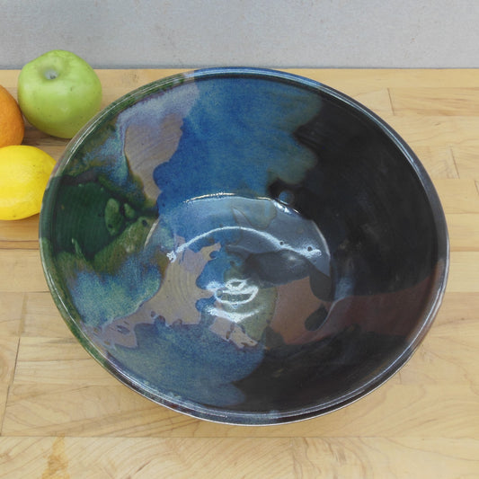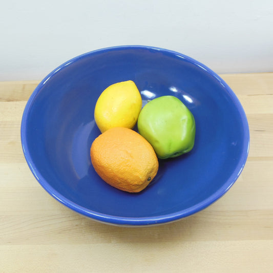 Unmarked Maker 11" Large Blue Pottery Fruit Salad Serving Footed Bowl