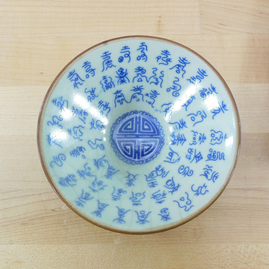 Chinese Xuande Mark Vintage Ming Style Calligraphy Celadon Small Bowl