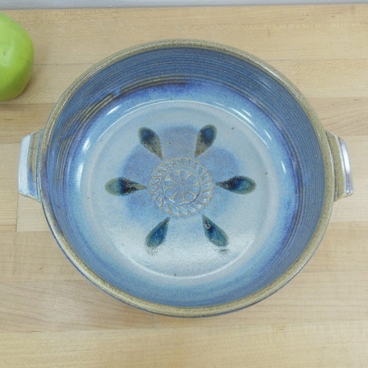 Geoff Walsh Signed Pottery 9" Bowl Casserole Dish Lug Handles Petals
