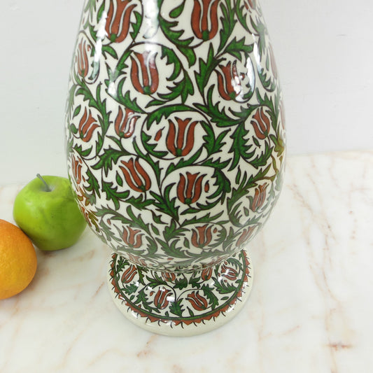 Turkish Iznik Style Large 20.5" Pottery Vase Vining Green Leaves Red Flower