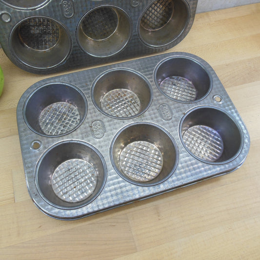 Ekco Ovenex Waffle Weave Tinned Steel Muffin Pans N-60 6 Hole
