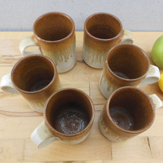 Chris Aston Elkesley England Studio Pottery Stoneware Mugs 6 Set Brown Tan
