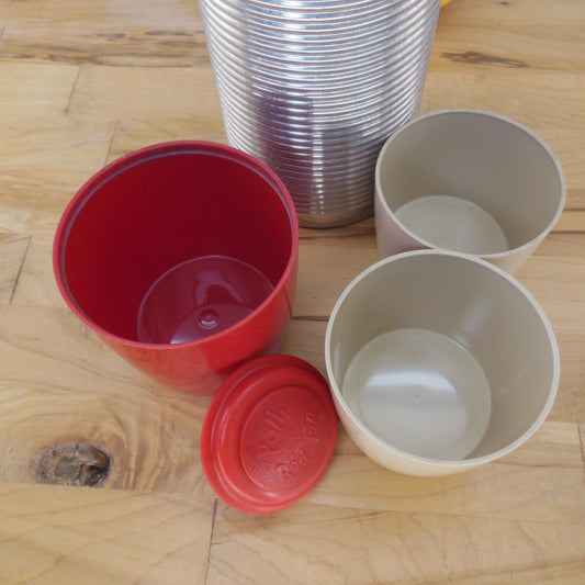 Thermos Bottle No. 2484 Ribbed Aluminum Poly Red Cap Cups