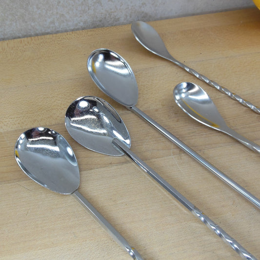 Cocktail Bar Mixing Stirring Spoons 5 Lot Twist Handles Chrome Stainless