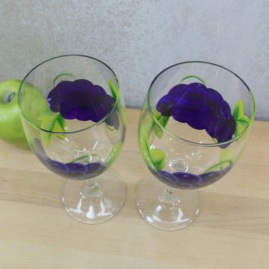 Wine Glass Goblet Pair Hand Painted Purple Green Grapes