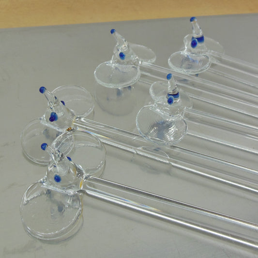 Elephant Head Blown Glass Swizzle Cocktail Stirrer Sticks Blue Clear