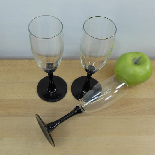 Durand France Luminarc Domino Black Stem - 3 Fluted Champagne Goblets 7-5/8"